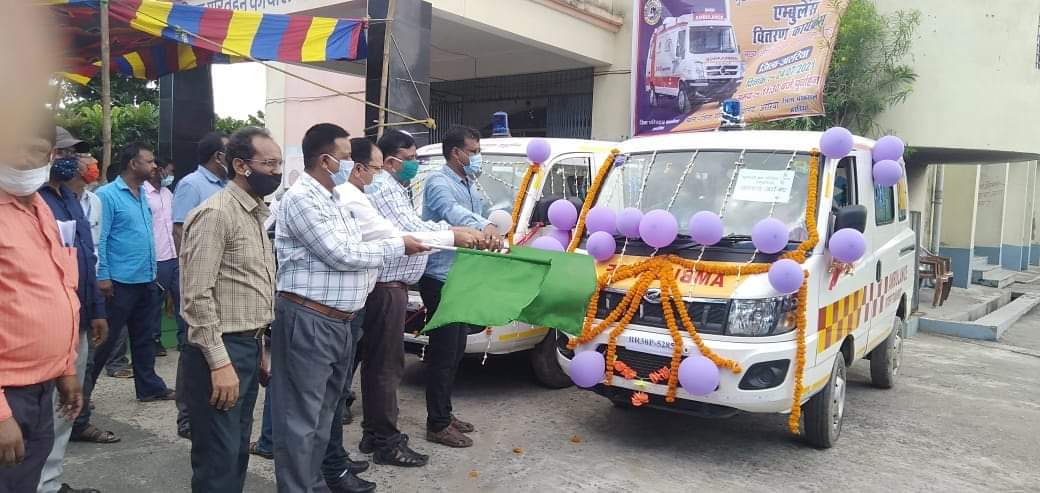 मुख्यमंत्री ग्राम परिवहन योजना” अंतर्गत 4 चयनित लाभुकों को मेडिकल एंबुलेंस की चाभी सौंपने बाद हरी झंडी दिखाकर रवाना