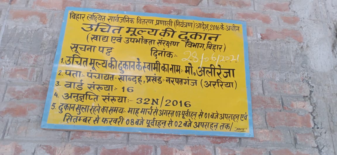 नरपतगंज प्रखंड क्षेत्र के खाबदह पंचायत वार्ड नंबर 16 में जन वितरण प्रणाली की 60 बोरा चावल ट्रैक्टर सहित ग्रामीणों द्वारा पकड़ा,एवं नरपतगंज थाना को फोन करके इसकी सूचना दी सूचना मिलते ही पुलिस बल आकर ट्रैक्टर एवं जप्त चावल की बोरी समेत थाना ले गई, थाना अध्यक्ष हैदरी ने बताया कि इस मामले का जांच कर कार्यवाही की जाएगी, वही ग्रामीणों ने बताया कि जन वितरण प्रणाली के डीलर मोहम्मद अली रजा द्वारा लोगों को अनाज का वितरण सही तरीके से नहीं किया जाता है ग्राहकों को 5 यूनिट की वह जगह 4 यूनिट ही दिया जाता है, आज सोमबार को करीब 8 बजे 60 बोरा चावल लेकर डीलर बाजार बिक्री करने निकले थे इसी क्रम में चावल लोड ट्रेक्टर को ग्रामीणों ने पकड़ कर पुलिस के हवाले कर दिया, वही जन वितरण प्रणाली के डीलर मोहम्मद अली रजा ने बताया कि हम 2003 से जन वितरण प्रणाली की दुकान चला रहे हैं हमें लोगों ने साजिश के तहत फंसाने की कोशिश की है यह माल मेरा नहीं है दूसरे वार्ड वाले को हम अनाज नहीं देते हैं क्योंकि उन लोगों का डीलर दूसरा है इसलिए हमें फंसाया जा रहा है