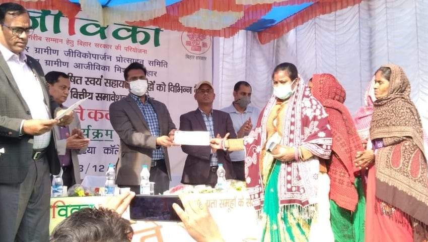 जीविका समूह की महिलाओं को आर्थिक रूप से सबल वित्तीय समावेशन के तहत का चेक वितरण