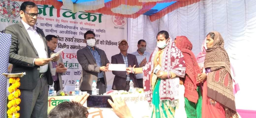जीविका समूह की महिलाओं को आर्थिक रूप से सबल बनाने की दिशा में मंगलवार को अररिया कॉलेज अररिया के प्रांगण में जिला पदाधिकारी श्री प्रशांत कुमार सीएच द्वारा समूह के सदस्यों को वित्तीय समावेशन के तहत का चेक वितरण किया गया