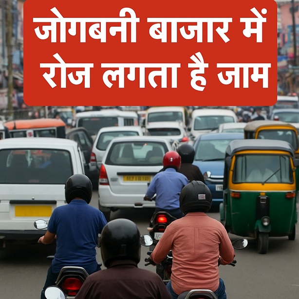 अररिया जिला अंतर्गत जोगबनी बाजार इन दिनों भारी जाम से जूझ रहा है। नेपाल से आने वाले ग्राहकों और दुर्गा पूजा की खरीदारी के चलते यहां रोजाना हजारों लोगों की भीड़ उमड़ रही है। स्थिति यह है कि मुख्य सड़क पर चारपहिया वाहन, ऑटो, रिक्शा, सिटी रिक्शा और यहां तक कि यात्री बसें भी मनमाने तरीके से बाजार के बीच से गुजर रही हैं।