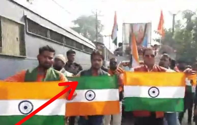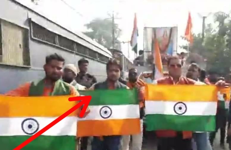 फॉरबिसगंज के विधायक के बेटे ने रैली के दौरान झंडे को उल्टा पकड़ के किया समर्थन