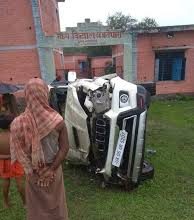 फोरलेन पर स्कॉर्पियो पलटी, तीन जख्मी