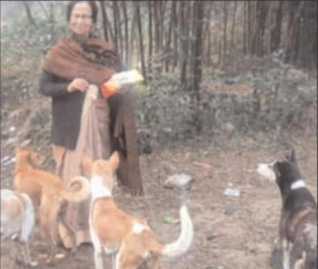 हर सुबह वे अपने घर से निकलती हैं, हाथों में रोटी और दाना लिए — और सड़क किनारे घूमते कुत्तों व बिल्ली के बच्चों को खाना खिलाती हैं।