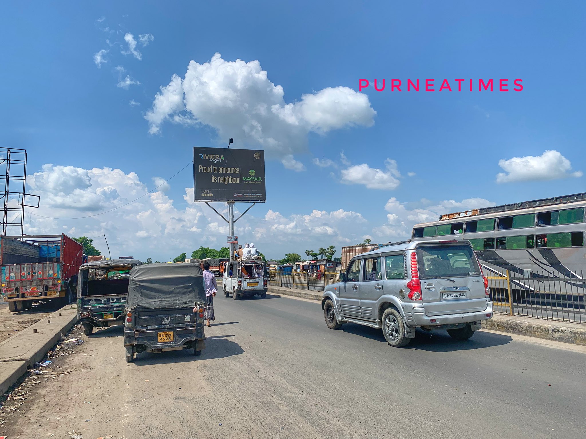 जगह जगह लगे होर्डिंग्स।