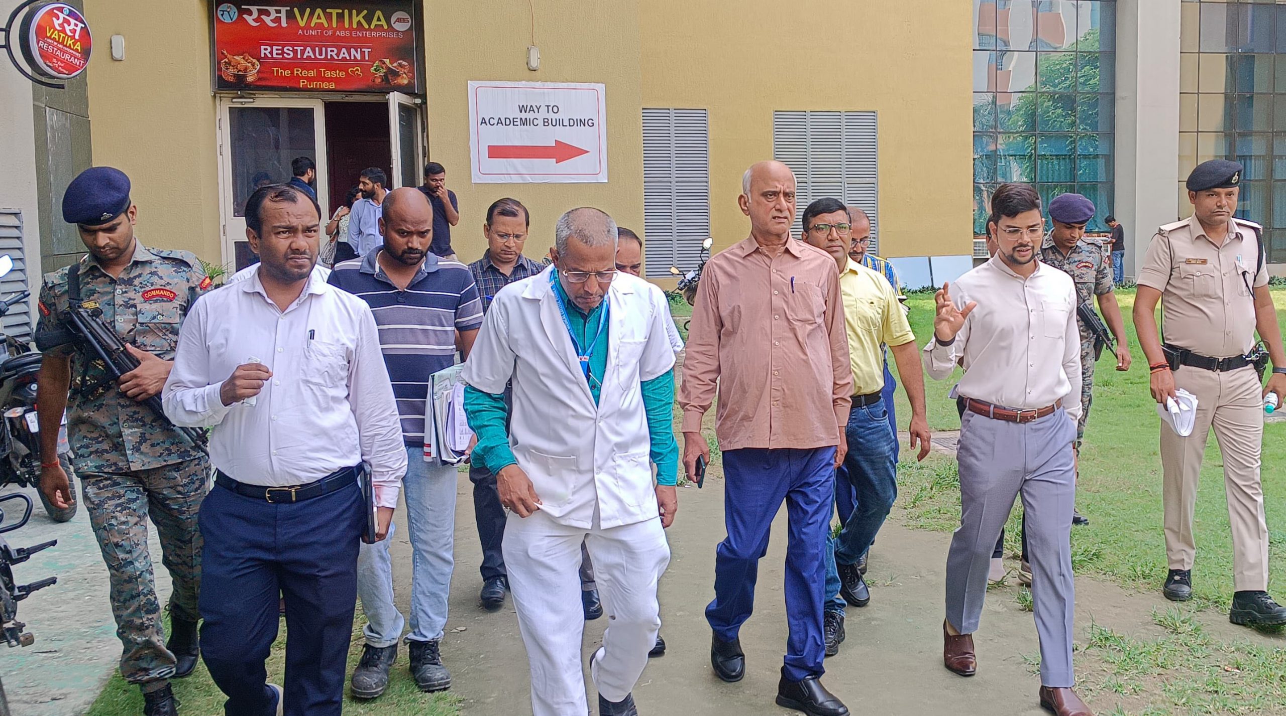 पूर्णिया: जिलाधिकारी अंशुल कुमार ने गुरुवार को राजकीय चिकित्सा महाविद्यालय एवं अस्पताल (जीएमसीएच) का औचक निरीक्षण किया। इस दौरान उन्होंने मेडिकल कॉलेज के एकेडमिक ब्लॉक, परीक्षा हॉल, ओपीडी, विभिन्न वार्डों और पूरे कैंपस का बारीकी से जायजा लिया।