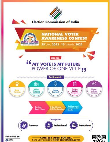 राष्ट्रीय मतदाता जागरुकता प्रतियोगिता-2022 में भागीदारी करें एवं ईनाम जीते। इस संबंध में विस्तृत विवरण https://t.co/16m4Y2uJ7e पर देखा जा सकता है।
