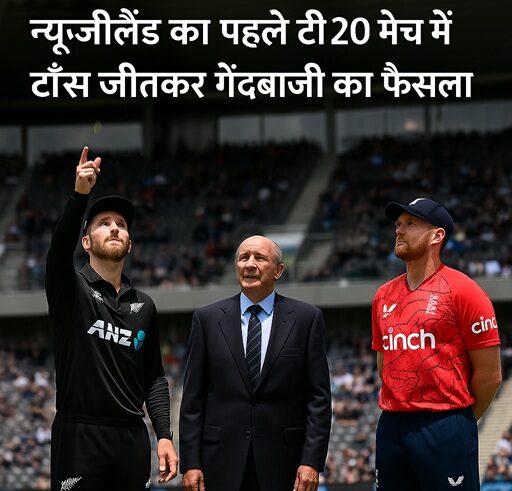 पहले टी20 में न्यूजीलैंड ने इंग्लैंड के खिलाफ टॉस जीतकर गेंदबाजी का सही निर्णय लिया। टीम संतुलित दिख रही है, जबकि इंग्लैंड की नई कप्तानी वाली टीम के लिए यह एक बड़ा टेस्ट है।