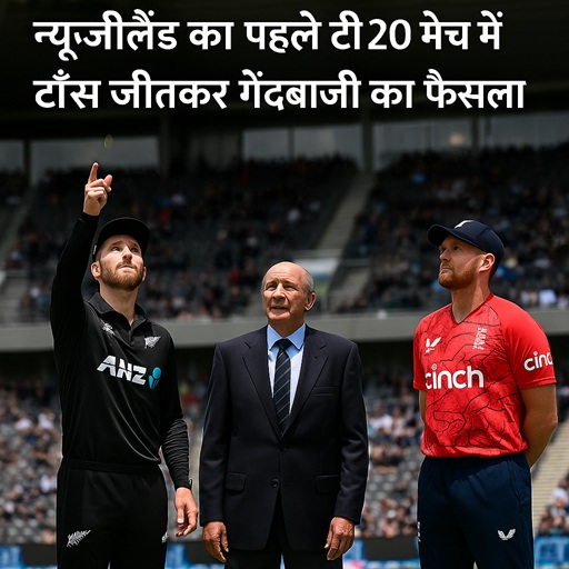 पहले टी20 में न्यूजीलैंड ने इंग्लैंड के खिलाफ टॉस जीतकर गेंदबाजी का सही निर्णय लिया। टीम संतुलित दिख रही है, जबकि इंग्लैंड की नई कप्तानी वाली टीम के लिए यह एक बड़ा टेस्ट है।