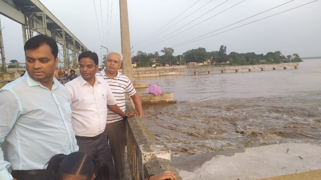 कोशी बराज के डिस्चार्ज पानी बहाव की स्थिति का निरीक्षण