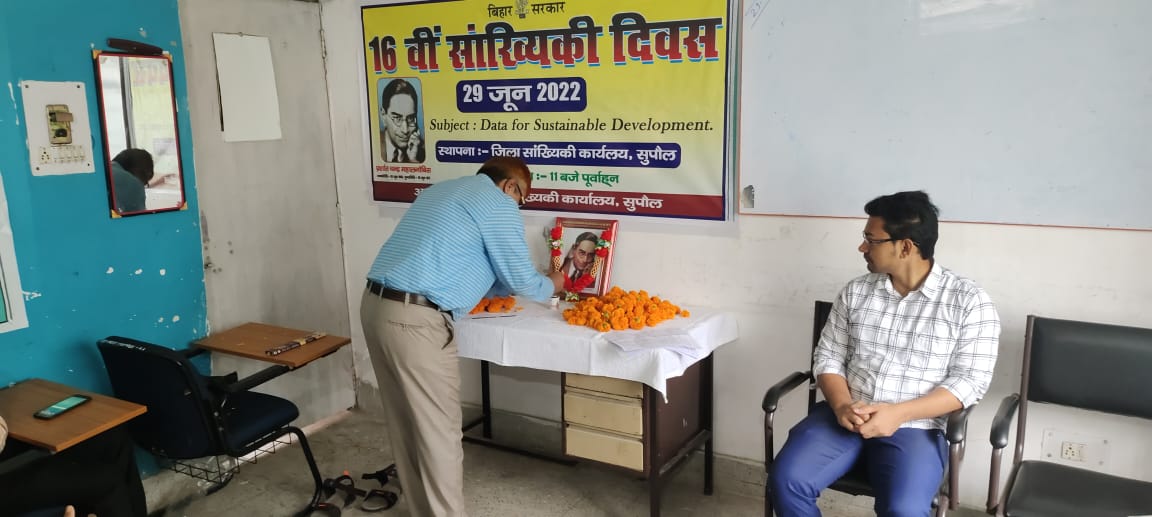 दिनांक 29.06.2022 को जिला सांख्यिकी कार्यालय, सुपौल में 16वाँ सांख्यिकी दिवस श्री मदन नारायण सिंह, जिला सांख्यिकी पदाधिकारी, सुपौल द्वारा मनाया गया।