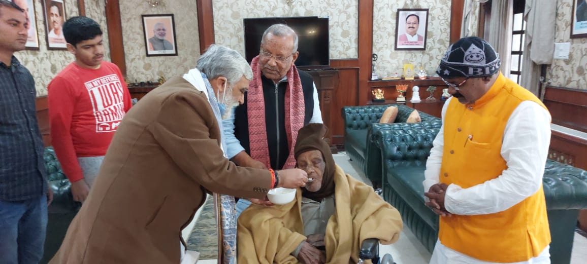 बिहार के उपमुख्यमंत्री श्री तारकिशोर प्रसाद जी के आवास पर उनके पिताजी और माताजी से आत्मीय मुलाकात