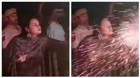 दिवाली पर आतिशबाजी के दौरान IAS टीना डाबी बाल-बाल बचीं, चेहरे पर आ गईं चिंगारियां